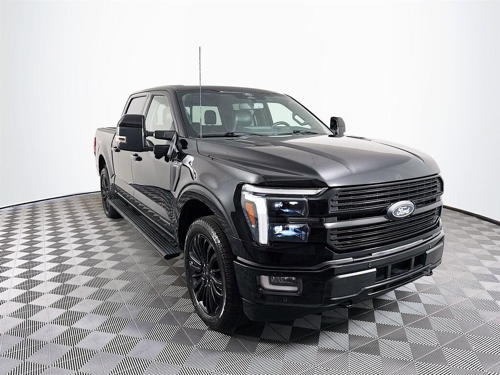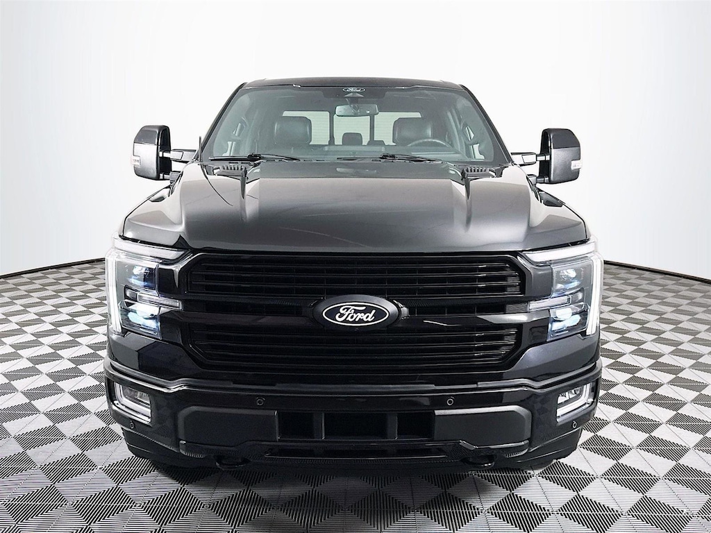 2024 Ford F-150 Platinum Black Metallic Platinum 14 Speakers, 4-Wheel Disc Brakes, ABS brakes, Adjustable pedals, Air Conditioning, Alloy wheels, AM/FM radio: SiriusXM with 360L, Auto High-beam Headlights, Auto tilt-away steering wheel, Auto-dimming door mirrors, Auto-dimming Rear-View mirror, Automatic temperature control, Brake assist, Bumpers: body-color, Compass, Delay-off headlights, Driver door bin, Driver vanity mirror, Dual front impact airbags, Dual front side impact airbags, Electronic Stability Control, Emergency communication system: SYNC 4 911 Assist, Equipment Group 702A High, Ford BlueCruise Equipped (3-Years Included), Front anti-roll bar, Front Bucket Seats, Front Center Armrest, Front dual zone A/C, Front fog lights, Front reading lights, Front wheel independent suspension, Fully automatic headlights, Garage door transmitter, Hard Folding Tonneau Pickup Box Cover, Heated door mirrors, Heated front seats, Heated rear seats, Heated steering wheel, Illuminated entry, LED Sideview Mirror Spotlights, Low tire pressure warning, Memory seat, Navigation system: Connected Navigation, Occupant sensing airbag, Outside temperature display, Overhead airbag, Overhead console, Panic alarm, Passenger door bin, Passenger vanity mirror, Pedal memory, Power door mirrors, Power driver seat, Power passenger seat, Power steering, Power Telescoping/Glass/Folding Trailer Tow Mirrors, Power windows, Radio data system, Rain sensing wipers, Rear reading lights, Rear seat center armrest, Rear step bumper, Rear window defroster, Remote keyless entry, Retractable Rear Center Step, Security system, Speed control, Split folding rear seat, Steering wheel memory, Steering wheel mounted audio controls, SYNC 4 w/Enhanced Voice Recognition, Tachometer, Telescoping steering wheel, Tilt steering wheel, Tough Bed Spray-In Bedliner, Traction control, Trip computer, Turn signal indicator mirrors, Unique Multi-Contour Leather Bucket Seats, Variably intermittent wipers, Ventilated front seats, Voltmeter, Wheels: 20" Painted Gloss Ebony Black.