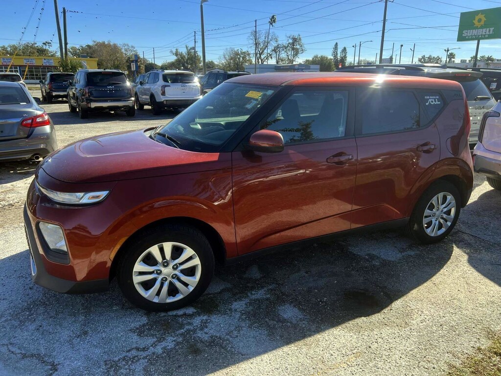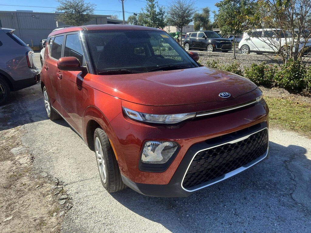 This 2020 Kia Soul LX in Mars Orange features: 4-Wheel Disc Brakes, 6 Speakers, 6-Way Adjustable Driver's Seat, ABS brakes, Air Conditioning, AM/FM radio, Apple CarPlay & Android Auto, Brake assist, Bumpers: body-color, Carpeted Floor Mats, Delay-off headlights, Driver door bin, Driver vanity mirror, Dual front impact airbags, Dual front side impact airbags, Electronic Stability Control, Exterior Parking Camera Rear, Front anti-roll bar, Front Bucket Seats, Front Center Armrest, Front reading lights, Front wheel independent suspension, Fully automatic headlights, Low tire pressure warning, Occupant sensing airbag, Outside temperature display, Overhead airbag, Overhead console, Passenger door bin, Passenger vanity mirror, Power door mirrors, Power steering, Power windows, Radio: AM/FM/MP3 Audio System, Rear Bumper Applique, Rear window defroster, Rear window wiper, Remote keyless entry, Speed control, Speed-sensing steering, Split folding rear seat, Steering wheel mounted audio controls, Tachometer, Telescoping steering wheel, Tilt steering wheel, Traction control, Trip computer, Variably intermittent wipers, Wheels: 16" x 6.5 Steel, Woven Cloth Seat Trim. Clean CARFAX. 29/35 City/Highway MPG