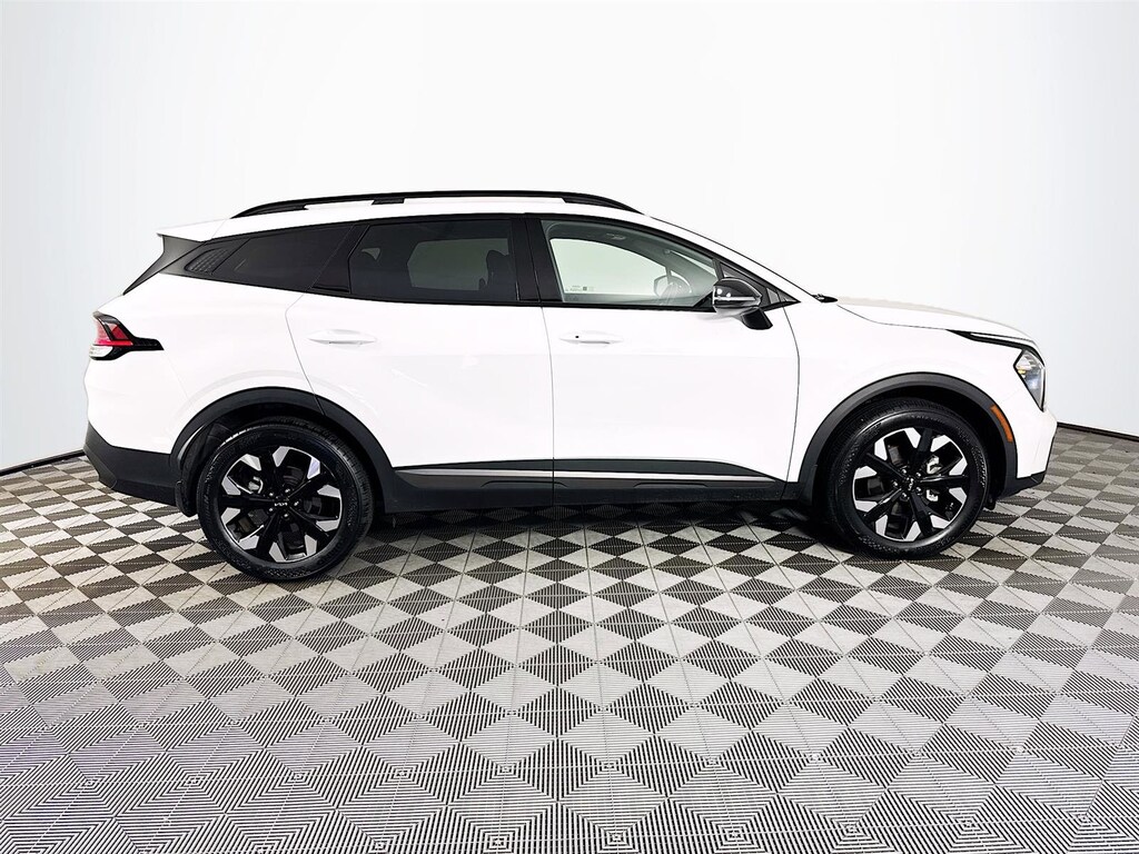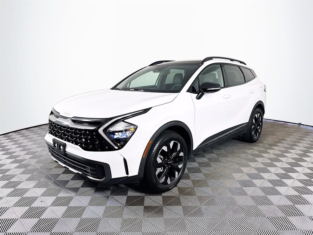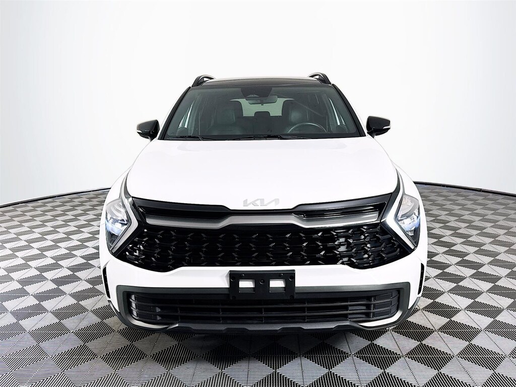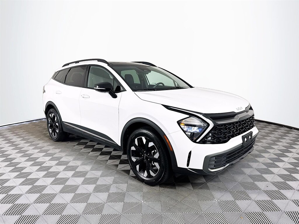 This 2023 Kia Sportage X-Line in Glacial White Pearl features: Kia Certified Pre-Owned Certified, AWD, 4-Wheel Disc Brakes, 6 Speakers, ABS brakes, Air Conditioning, Alloy wheels, AM/FM radio: SiriusXM, Apple CarPlay & Android Auto, Auto High-beam Headlights, Automatic temperature control, Axle Ratio: 3.648, Brake assist, Bumpers: body-color, Cargo Tray, Carpet Floor Mats X-Line, Compass, Delay-off headlights, Driver door bin, Driver vanity mirror, Dual front impact airbags, Dual front side impact airbags, Electronic Stability Control, Emergency communication system, Four wheel independent suspension, Front anti-roll bar, Front Bucket Seats, Front Center Armrest, Front dual zone A/C, Fully automatic headlights, harman/kardon® Speakers, Heated door mirrors, Heated Front Bucket Seats, Heated front seats, Illuminated entry, Leather Shift Knob, Leather steering wheel, LED Interior Lighting, Low tire pressure warning, Mud Guards, Navigation System, Occupant sensing airbag, Outside temperature display, Overhead airbag, Overhead console, Panic alarm, Panoramic Sunroof, Passenger door bin, Passenger vanity mirror, Power door mirrors, Power driver seat, Power steering, Power windows, Premium Leatherette Seat Trim, Radio: AM/FM/HD Audio System, Rain sensing wipers, Rear anti-roll bar, Rear seat center armrest, Rear window defroster, Rear window wiper, Remote keyless entry, Security system, Smart Power Liftgate, Speed control, Speed-sensing steering, Split folding rear seat, Spoiler, Steering wheel mounted audio controls, Tachometer, Telescoping steering wheel, Tilt steering wheel, Tow Hitch w/Harness, Traction control, Trip computer, Turn signal indicator mirrors, Variably intermittent wipers, Wheels: 19" Gloss Black Alloy, X-Line Premium Package, AWD. Certified. Clean CARFAX. Priced below KBB Fair Purchase Price! 23/28 City/Highway MPG