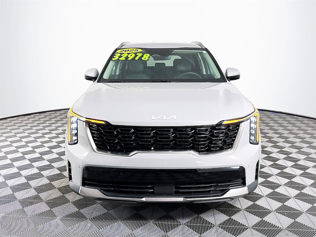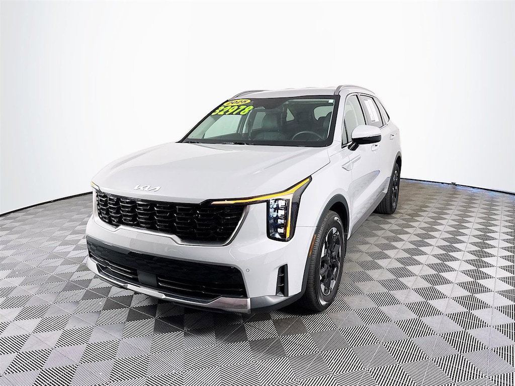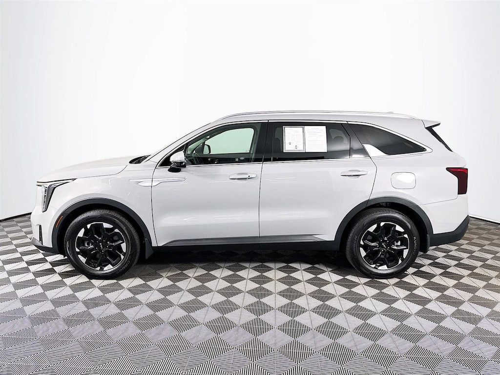 This 2025 Kia Sorento S in Wolf Gray features: Kia Certified Pre-Owned Certified, 3rd row seats: split-bench, 4-Wheel Disc Brakes, 6 Speakers, ABS brakes, Air Conditioning, Alloy wheels, AM/FM radio: SiriusXM, Apple CarPlay & Android Auto, Auto High-beam Headlights, Auto-Dimming Mirror w/HomeLink, Automatic temperature control, Brake assist, Bumpers: body-color, Carpet Cargo Mat w/Seatback Protection, Carpeted Floor Mats, Delay-off headlights, Driver door bin, Driver vanity mirror, Dual front impact airbags, Dual front side impact airbags, Electronic Stability Control, Emergency communication system: 911 Connect, Exterior Parking Camera Rear, Four wheel independent suspension, Front anti-roll bar, Front Bucket Seats, Front Center Armrest, Front dual zone A/C, Front reading lights, Fully automatic headlights, Heated door mirrors, Heated Front Bucket Seats, Heated front seats, Illuminated entry, Knee airbag, Leather Shift Knob, Leather steering wheel, Low tire pressure warning, Mudguards, Navigation System, Occupant sensing airbag, Outside temperature display, Overhead airbag, Overhead console, Panic alarm, Passenger door bin, Passenger vanity mirror, Power door mirrors, Power driver seat, Power steering, Power windows, Radio data system, Radio: AM/FM Standard Sound System, Rear anti-roll bar, Rear reading lights, Rear seat center armrest, Rear side impact airbag, Rear window defroster, Rear window wiper, Remote keyless entry, Security system, Speed control, Speed-sensing steering, Split folding rear seat, Spoiler, Steering wheel mounted audio controls, SynTex Artificial Leather Seat Trim, Tachometer, Telescoping steering wheel, Tilt steering wheel, Traction control, Trip computer, Turn signal indicator mirrors, Variably intermittent wipers, Wheels: 18" Gloss Black Alloy. Certified. Clean CARFAX. 23/31 City/Highway MPG