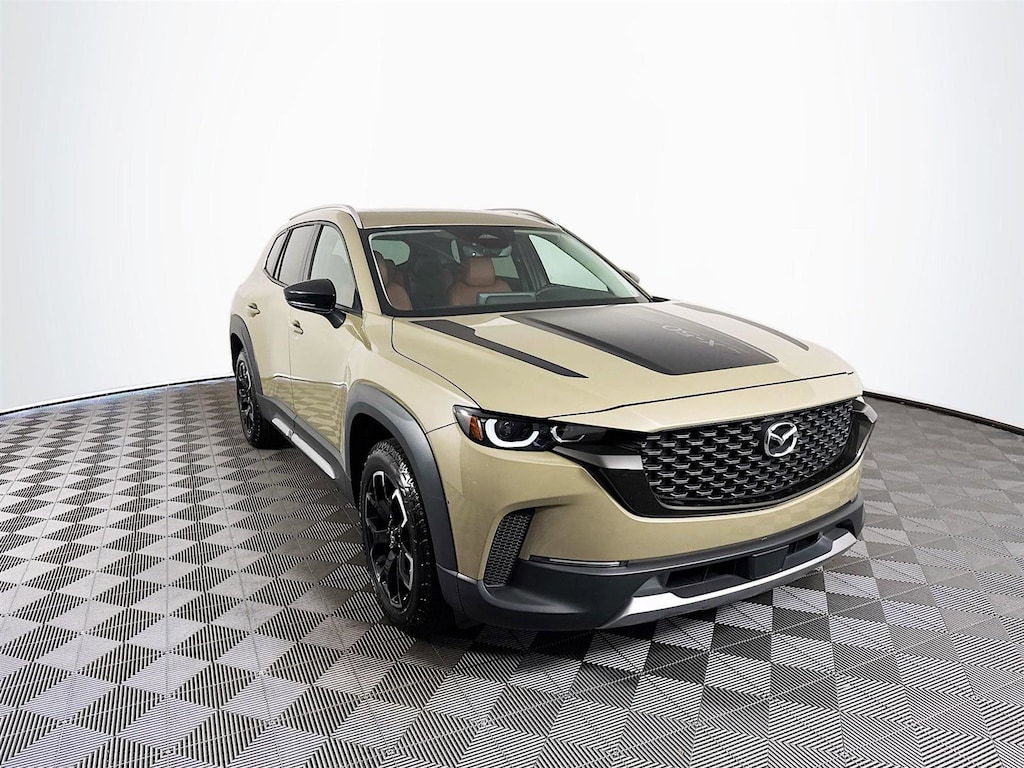 2025 Mazda CX-50 2.5 Turbo Meridian Edition is availble now at Crown INEOS. Cool and unique color combo Zircon Sand Metallic with brown leather. 2.5 Turbo Meridian Edition is well equipped including- 12 Speakers, 4-Wheel Disc Brakes, ABS brakes, Air Conditioning, Alloy wheels, AM/FM radio: SiriusXM, AppLink/Apple CarPlay and Android Auto, Auto High-beam Headlights, Auto-dimming Rear-View mirror, Automatic temperature control, Brake assist, Bumpers: body-color, Cargo Liner w/Seatback Protection, Compass, Delay-off headlights, Driver door bin, Driver vanity mirror, Dual front impact airbags, Dual front side impact airbags, E911 Automatic Emergency Notification, Electronic Stability Control, Emergency communication system: MAZDA CONNECT, Exterior Parking Camera Rear, Front anti-roll bar, Front Bucket Seats, Front Center Armrest, Front dual zone A/C, Front reading lights, Front wheel independent suspension, Fully automatic headlights, Garage door transmitter: HomeLink, Heated & Ventilated Front Bucket Seats, Heated door mirrors, Heated front seats, Heated rear seats, Heated steering wheel, Illuminated entry, Infotainment System Voice Command, Knee airbag, Leather Seat Trim, Leather Shift Knob, Leather steering wheel, Low tire pressure warning, Memory seat, Multifunction Commander Control, Navigation system: MAZDA CONNECT, Occupant sensing airbag, Outdoor Adventure Backpack Kit, Outside temperature display, Overhead airbag, Overhead console, Panic alarm, Passenger door bin, Passenger vanity mirror, Power door mirrors, Power driver seat, Power Liftgate, Power moonroof, Power passenger seat, Power steering, Power windows, Radio Broadcast Data System Program Information, Radio data system, Radio: AM/FM/HD Audio System, Rain sensing wipers, Rear seat center armrest, Rear window defroster, Rear window wiper, Remote keyless entry, SMS Text Msg Audio Delivery & Reply, Speed control, Speed-sensing steering, Split folding rear seat, Spoiler, Steering wheel mounted audio controls, Tachometer, Telescoping steering wheel, Tilt steering wheel, Traction control, Trip computer, Turn signal indicator mirrors, Variably intermittent wipers, Ventilated front seats, Weather Package, Wheels: 18" x 8J Aluminum Alloy, Zircon Sand Metallic Paint Charge.