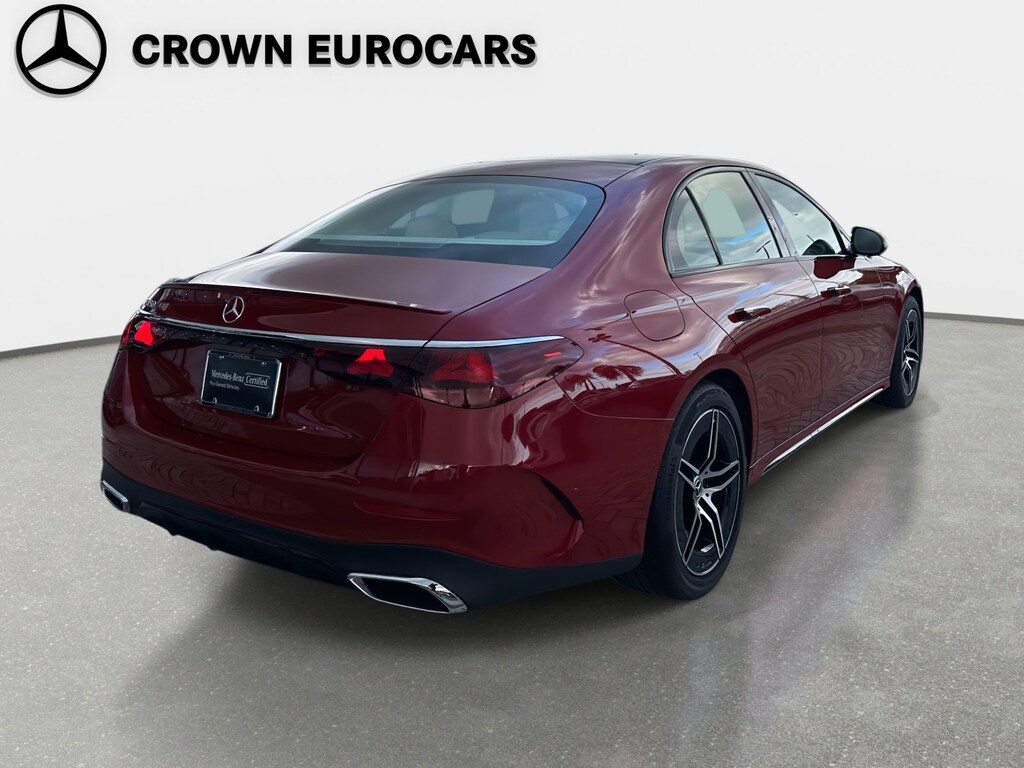 2025 Mercedes-Benz E-Class E 350 Mercedes-Benz Certified, 2.0L I4 Turbocharged, 4-Wheel Disc Brakes, 6 Speakers, ABS brakes, Air Conditioning, Alloy wheels, AM/FM radio: SiriusXM, Anti-whiplash front head restraints, Apple CarPlay®/Android Auto®, Auto High-beam Headlights, Auto tilt-away steering wheel, Auto-dimming door mirrors, Auto-dimming Rear-View mirror, Automatic temperature control, Brake assist, Bumpers: body-color, Center Console in Natural Grain Black Ash Wood, Delay-off headlights, Driver door bin, Driver vanity mirror, Dual front impact airbags, Dual front side impact airbags, Electronic Stability Control, Emergency communication system: eCall Emergency System, Exterior Parking Camera Rear, Four wheel independent suspension, Front anti-roll bar, Front Bucket Seats, Front Center Armrest w/Storage, Front dual zone A/C, Front reading lights, Fully automatic headlights, Garage door transmitter: HomeLink, Genuine wood dashboard insert, Head restraints memory, Heated door mirrors, Heated Front Bucket Seats, Heated front seats, Illuminated entry, Knee airbag, Leather steering wheel, Low tire pressure warning, MB-Tex Upholstery, Memory seat, Navigation system: MBUX, Occupant sensing airbag, Outside temperature display, Overhead airbag, Overhead console, Panic alarm, Passenger door bin, Passenger vanity mirror, Power adjustable front head restraints, Power adjustable rear head restraints, Power door mirrors, Power driver seat, Power moonroof, Power passenger seat, Power steering, Power windows, Premium audio system: MBUX, Radio data system, Radio: 3rd Generation MBUX Multimedia System with Navigation, Rain sensing wipers, Rear anti-roll bar, Rear fog lights, Rear reading lights, Rear seat center armrest, Rear window defroster, Remote keyless entry, Security system, Speed control, Speed-sensing steering, Split folding rear seat, Steering wheel memory, Steering wheel mounted audio controls, Tachometer, Telescoping steering wheel, Tilt steering wheel, Traction control, Trip computer, Turn signal indicator mirrors, Variably intermittent wipers, Weather band radio, 2.0L I4 Turbocharged. Red Metallic