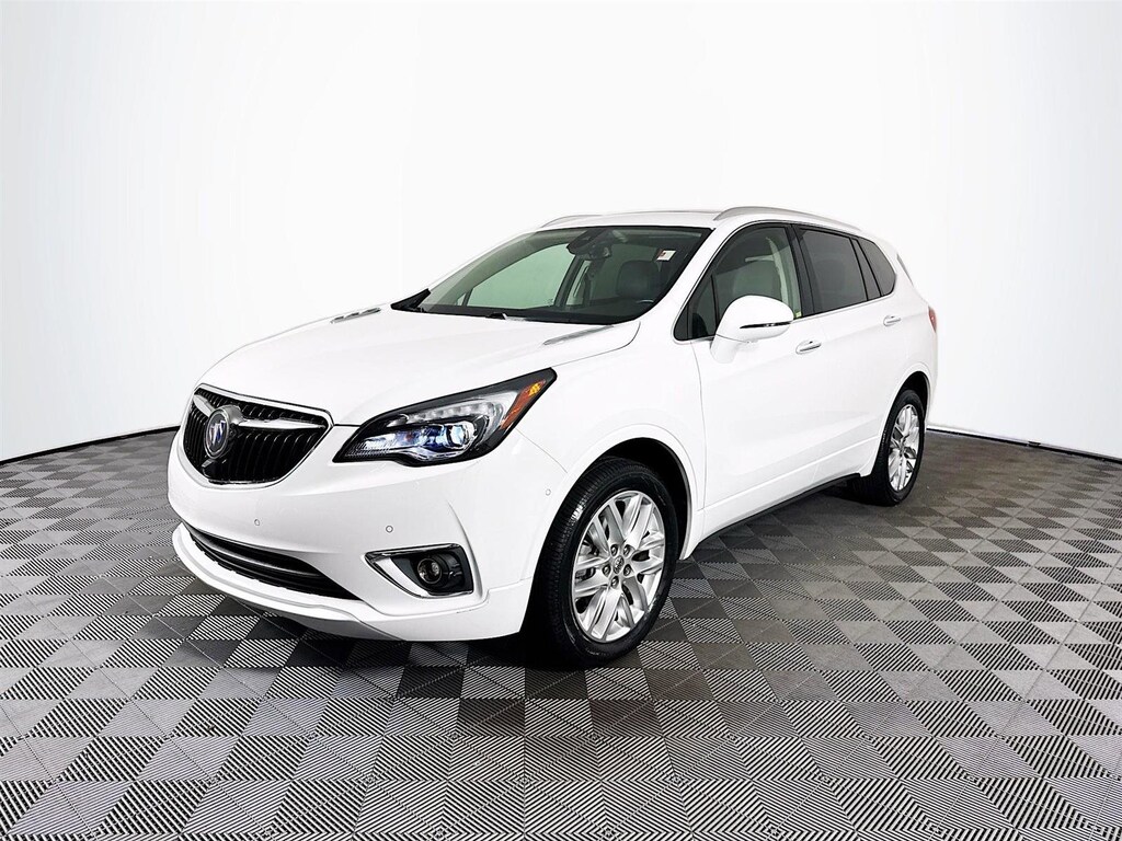 This 2019 Buick Envision Premium II in Summit White features: **CROWN CONFIDENCE PLAN USED CAR GUARANTEE Certified, 19" Aluminum Wheels, 3.17 Final Drive Axle Ratio, 4-Wheel Disc Brakes, 7 Speakers, ABS brakes, Adaptive Cruise Control, Air Conditioning, All-Weather Cargo Mat (LPO), All-Weather Floor Mats, Alloy wheels, AM/FM radio: SiriusXM, Apple CarPlay/Android Auto, Auto High-beam Headlights, Auto-dimming door mirrors, Auto-dimming Rear-View mirror, Automatic temperature control, Bose Premium 7-Speaker System w/Amplifier, Brake assist, Buick Interior Protection Package (LPO), Bumpers: body-color, Compass, Delay-off headlights, Driver 8-Way Power Seat Adjuster, Driver Confidence Package, Driver door bin, Driver vanity mirror, Dual front impact airbags, Dual front side impact airbags, Electronic Stability Control, Emergency communication system: OnStar and Buick connected services capable, Exterior Parking Camera Rear, Forward Automatic Braking, Four wheel independent suspension, Front anti-roll bar, Front Bucket Seats, Front Center Armrest, Front dual zone A/C, Front fog lights, Front Passenger 8-Way Power Seat Adjuster, Front reading lights, Fully automatic headlights, Garage door transmitter, Heads-Up Display, Heated & Cooled Driver & Front Passenger Seats, Heated door mirrors, Heated Driver & Front Passenger Seats, Heated front seats, Heated rear seats, Heated steering wheel, Illuminated entry, Knee airbag, Leather Shift Knob, Low tire pressure warning, Manual Seat Adjuster, Memory seat, Navigation System, Occupant sensing airbag, Outside temperature display, Overhead airbag, Overhead console, Panic alarm, Passenger door bin, Passenger vanity mirror, Perforated Leather-Appointed Seat Trim, Power door mirrors, Power driver seat, Power Liftgate, Power Panoramic Tilt-Sliding Moonroof, Power passenger seat, Power steering, Power windows, Preferred Equipment Group 1SP, Radio data system, Radio: Buick Infotainment System AM/FM w/Nav, Rain sensing wipers, Rear air conditioning, Rear anti-roll bar, Rear reading lights, Rear seat center armrest, Rear side impact airbag, Rear window defroster, Rear window wiper, Remote keyless entry, Roof rack: rails only, Security system, SiriusXM Radio, Speed control, Speed-sensing steering, Split folding rear seat, Spoiler, Steering wheel mounted audio controls, Surround Vision, Tachometer, Telescoping steering wheel, Tilt steering wheel, Traction control, Trip computer, Turn signal indicator mirrors, Variably intermittent wipers, Ventilated front seats, Wheel Locks. Certified. Clean CARFAX. CARFAX One-Owner. Odometer is 19528 miles below market average! Priced below KBB Fair Purchase Price!