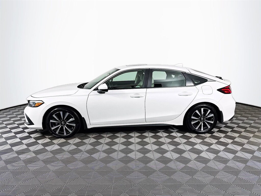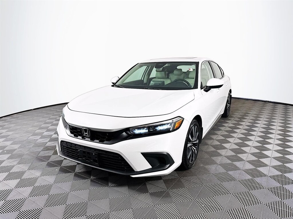 This 2023 Honda Civic EX-L in Platinum White Pearl features: **CROWN CONFIDENCE PLAN USED CAR GUARANTEE Certified, Black Leather, 17" Alloy Wheels, 4-Wheel Disc Brakes, 8 Speakers, ABS brakes, Adaptive Cruise Control: Adaptive Cruise Control (ACC) with Low-Speed Follow, Air Conditioning, Alloy wheels, AM/FM radio, Apple CarPlay/Android Auto, Auto High-beam Headlights, Automatic temperature control, Brake assist, Bumpers: body-color, Delay-off headlights, Driver door bin, Driver vanity mirror, Dual front impact airbags, Dual front side impact airbags, Electronic Stability Control, Emergency communication system: HondaLink, Exterior Parking Camera Rear, Four wheel independent suspension, Front anti-roll bar, Front Bucket Seats, Front Center Armrest, Front dual zone A/C, Front reading lights, Fully automatic headlights, Heated door mirrors, Heated Front Bucket Seats, Heated front seats, Illuminated entry, Knee airbag, Lane departure: Lane Keeping Assist System (LKAS) active, Leather Shift Knob, Leather steering wheel, Leather-Trimmed Seating Surfaces, Low tire pressure warning, Occupant sensing airbag, Outside temperature display, Overhead airbag, Panic alarm, Passenger door bin, Passenger vanity mirror, Power door mirrors, Power driver seat, Power moonroof, Power steering, Power windows, Radio data system, Radio: 180-Watt Audio System, Rear anti-roll bar, Rear seat center armrest, Rear side impact airbag, Rear window defroster, Rear window wiper, Remote keyless entry, Security system, Speed control, Speed-sensing steering, Split folding rear seat, Steering wheel mounted audio controls, Tachometer, Telescoping steering wheel, Tilt steering wheel, Traction control, Trip computer, Variably intermittent wipers, Voltmeter, Black Leather. Certified. Clean CARFAX. CARFAX One-Owner. Odometer is 16817 miles below market average! Priced below KBB Fair Purchase Price! 31/39 City/Highway MPG