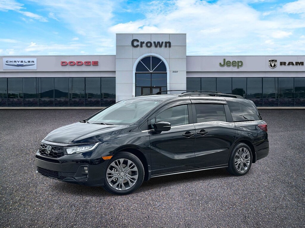 ALL SERVICES PERFORMED ON THIS VEHICLE ARE INCLUDED IN OUR ONLINE PRICE!! CROWN HONDA DOES NOT CHARGE RECONDITIONING OR CERTIFICATION FEES!! This 2025 Honda Odyssey Touring in Black features: Certified. 19" Silver Alloy Wheels, 7 Speakers, AM/FM radio: SiriusXM, Apple CarPlay/Android Auto, Auto-dimming Rear-View mirror, Automatic temperature control, Blind Spot Information (BSI) System warning, Exterior Parking Camera Rear, Front dual zone A/C, Front fog lights, Fully automatic headlights, Lane departure: Lane Keeping Assist System (LKAS) active, Leather Trimmed Seats w/Piping, Memory seat, Navigation system: Honda Satellite-Linked Navigation System, Power driver seat, Power Liftgate, Power moonroof, Power passenger seat, Rear air conditioning, Remote keyless entry, Steering wheel mounted audio controls. Clean CARFAX. CARFAX One-Owner.