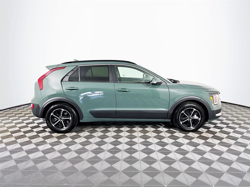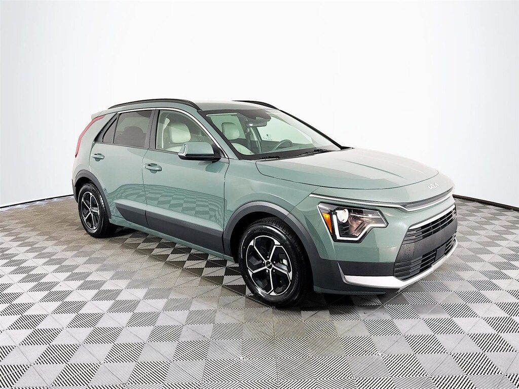 This 2023 Kia Niro EX in Cityscape Green features: 1.6L I4 DGI Hybrid DOHC 16V LEV3-SULEV30, 4-Wheel Disc Brakes, 4.438 Axle Ratio, 6 Speakers, ABS brakes, Air Conditioning, Alloy wheels, AM/FM radio: SiriusXM, Apple CarPlay & Android Auto, Auto High-beam Headlights, Automatic temperature control, Brake assist, Bumpers: body-color, Carpet Floor Mats, Cloth & Vegan Leather-Trimmed Seats, Delay-off headlights, Driver door bin, Driver vanity mirror, Dual front impact airbags, Dual front side impact airbags, Electronic Stability Control, Emergency communication system: Kia Connect (includes 1 year free trial), Exterior Parking Camera Rear, Four wheel independent suspension, Front anti-roll bar, Front Bucket Seats, Front Center Armrest, Front dual zone A/C, Front reading lights, Fully automatic headlights, Heated door mirrors, Heated Front Bucket Seats, Heated front seats, Illuminated entry, Knee airbag, Leather Shift Knob, Light Gray Interior Color Package, Low tire pressure warning, Navigation System, Occupant sensing airbag, Outside temperature display, Overhead airbag, Overhead console, Panic alarm, Passenger door bin, Passenger vanity mirror, Power door mirrors, Power driver seat, Power steering, Power windows, Radio: AM/FM/HD/SiriusXM, Rain sensing wipers, Rear anti-roll bar, Rear seat center armrest, Rear window defroster, Rear window wiper, Remote keyless entry, Security system, Smart Key w/ Push Button and Remote Start, Speed control, Speed-sensing steering, Split folding rear seat, Spoiler, Steering wheel mounted audio controls, Telescoping steering wheel, Tilt steering wheel, Traction control, Trip computer, Turn signal indicator mirrors, Variably intermittent wipers, Wheel Locks, Wheels: 16" Alloy Aero, 1.6L I4 DGI Hybrid DOHC 16V LEV3-SULEV30. Clean CARFAX. CARFAX One-Owner. Priced below KBB Fair Purchase Price! 53/54 City/Highway MPG
