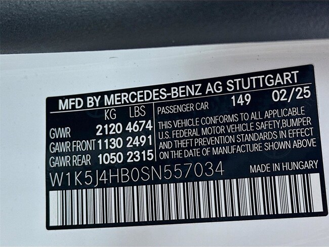 - VIN : W1K5J4HB0SN557034