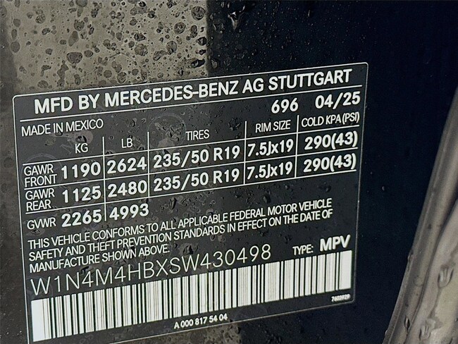 - VIN : W1N4M4HBXSW430498