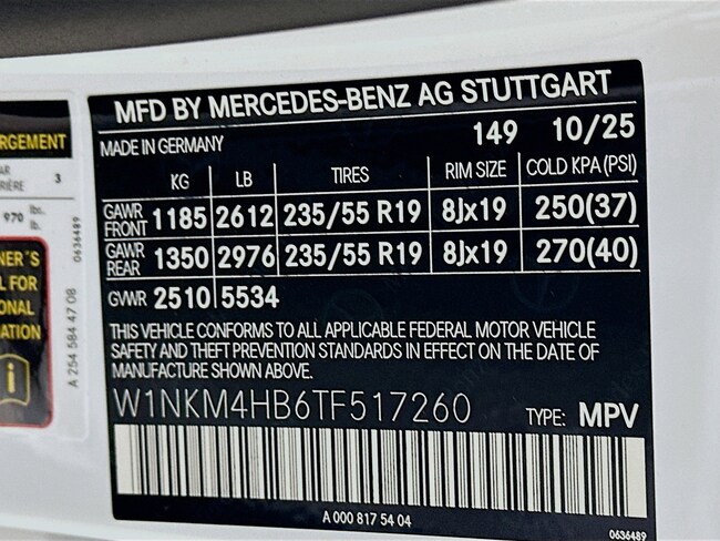 - VIN : W1NKM4HB6TF517260