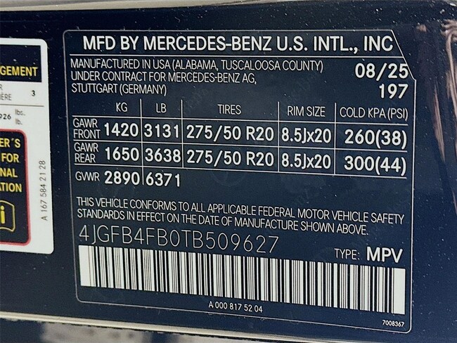 - VIN : 4JGFB4FB0TB509627